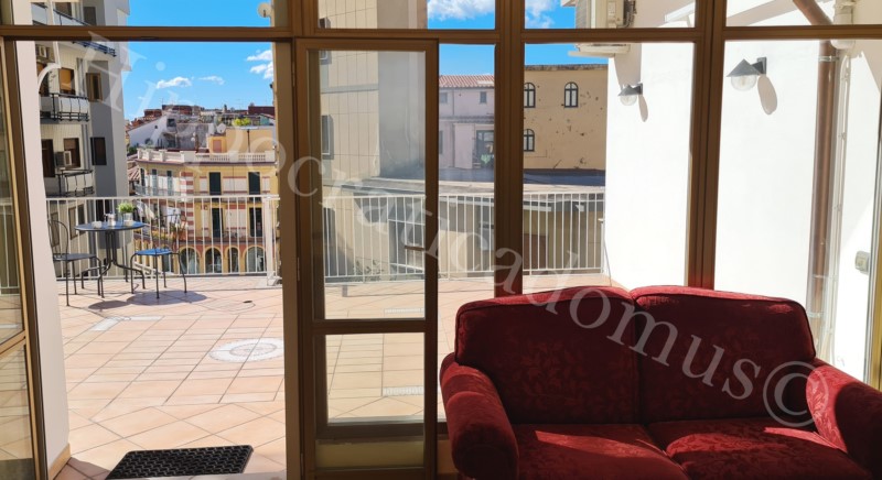 L’appartamento, anche avendo un affaccio quasi su Piazza Portanova, è leggermente arretrato rispetto ad essa e, per questo, gode di tranquillità e riservatezza.