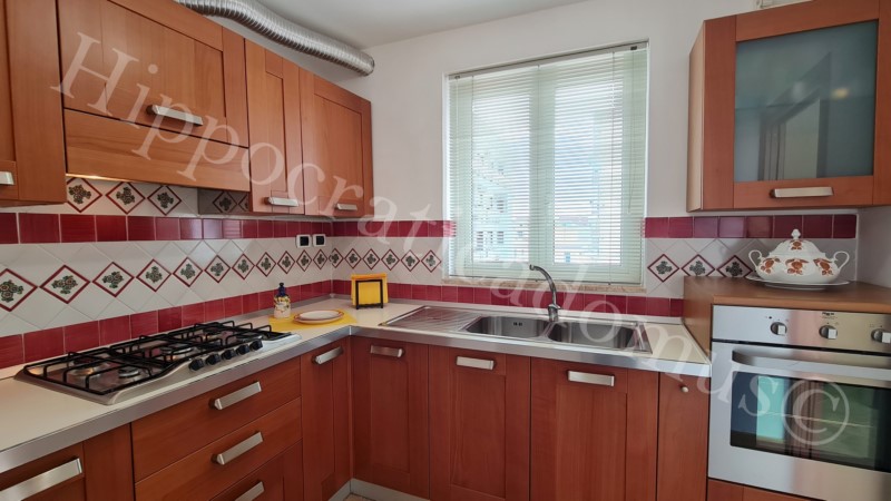 Le dotazioni dell’appartamento, oltre agli arredi in foto, comprendono anche: lavatrice, televisore, forno e frigorifero con congelatore, lavastoviglie oltre a stoviglie e pentolame. Predisposizione per la linea telefonica.